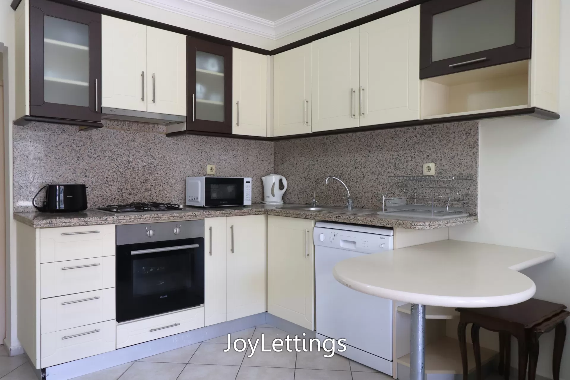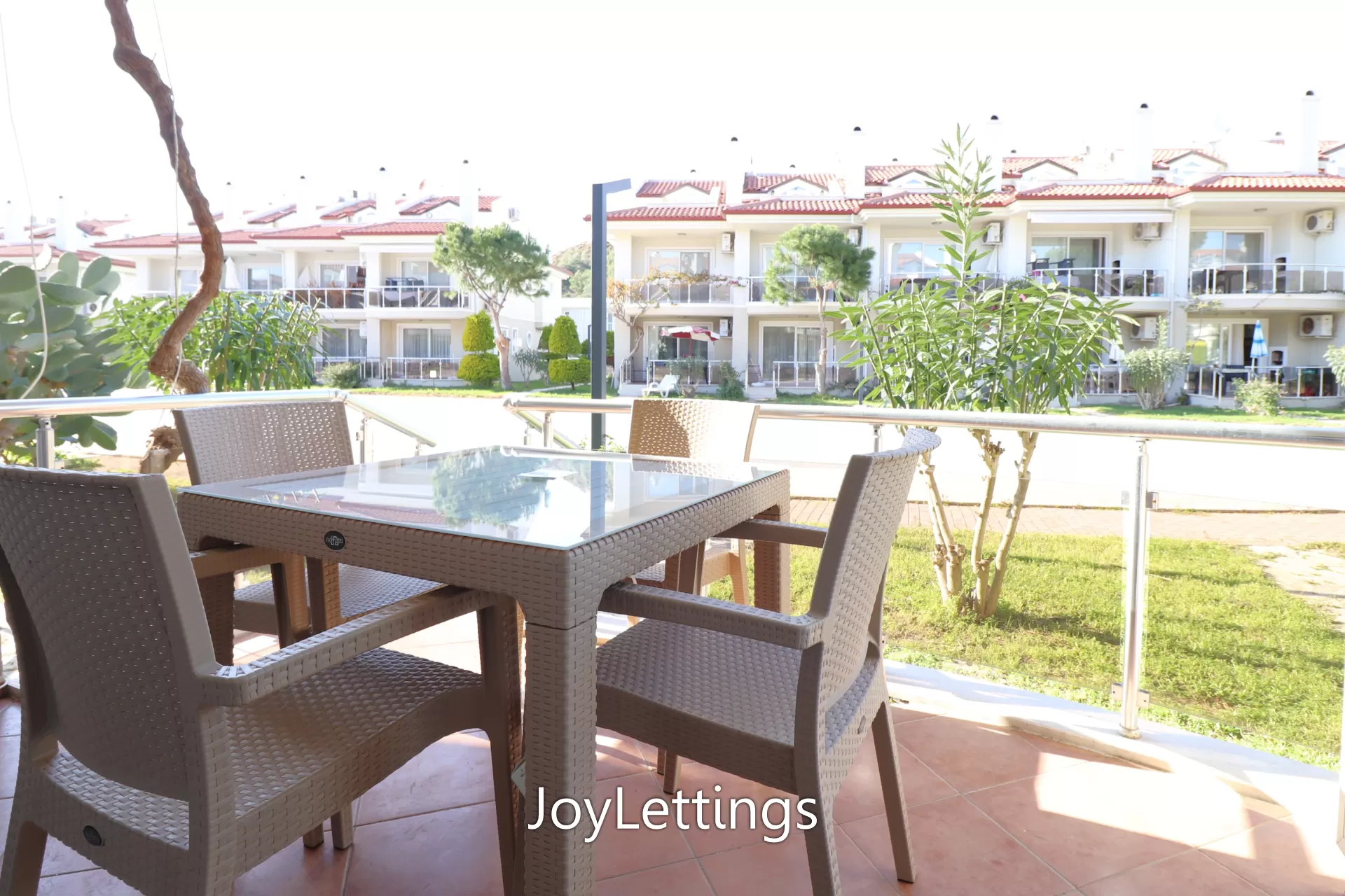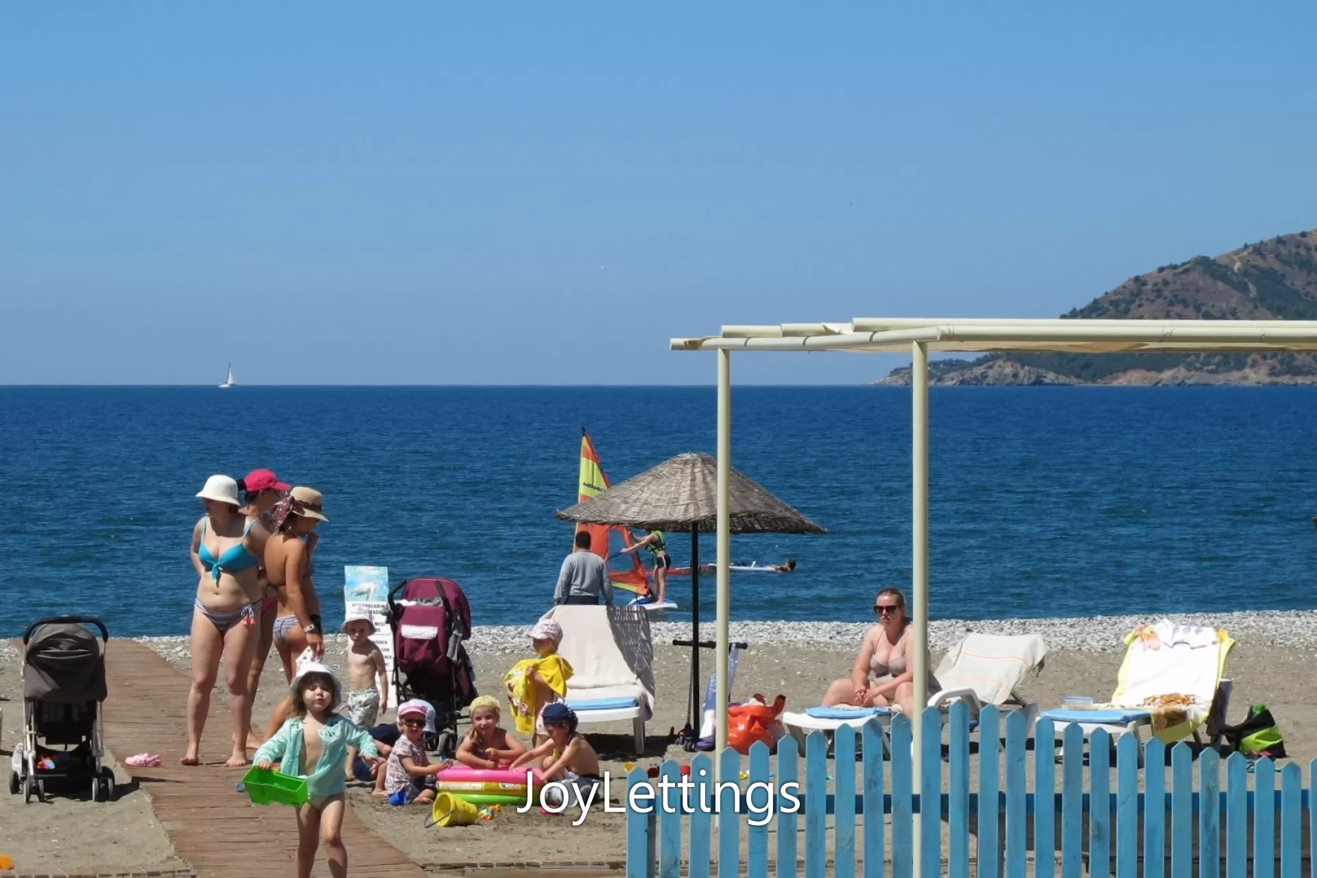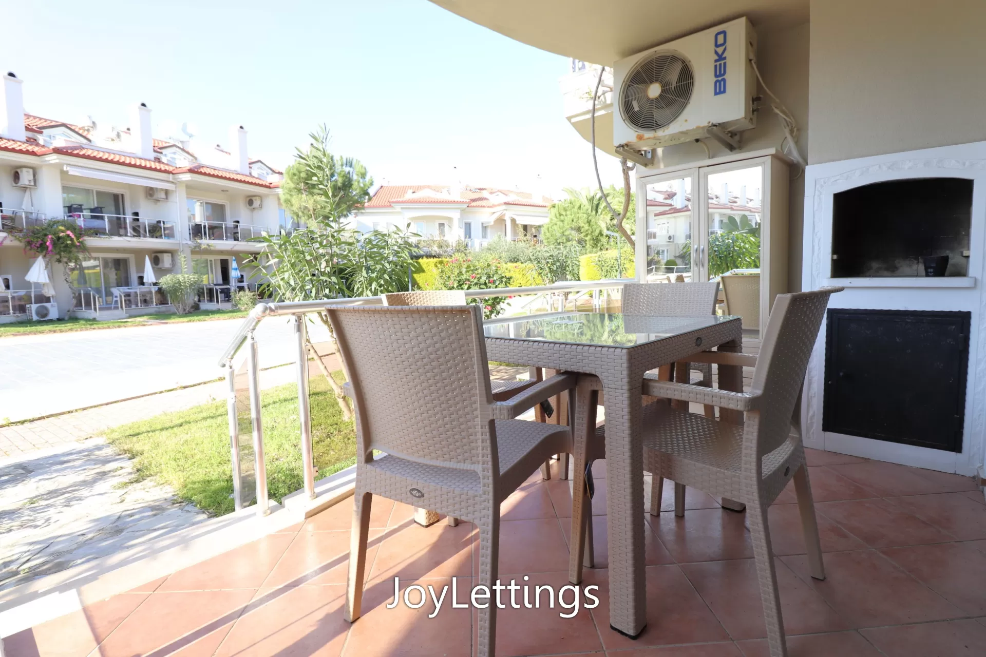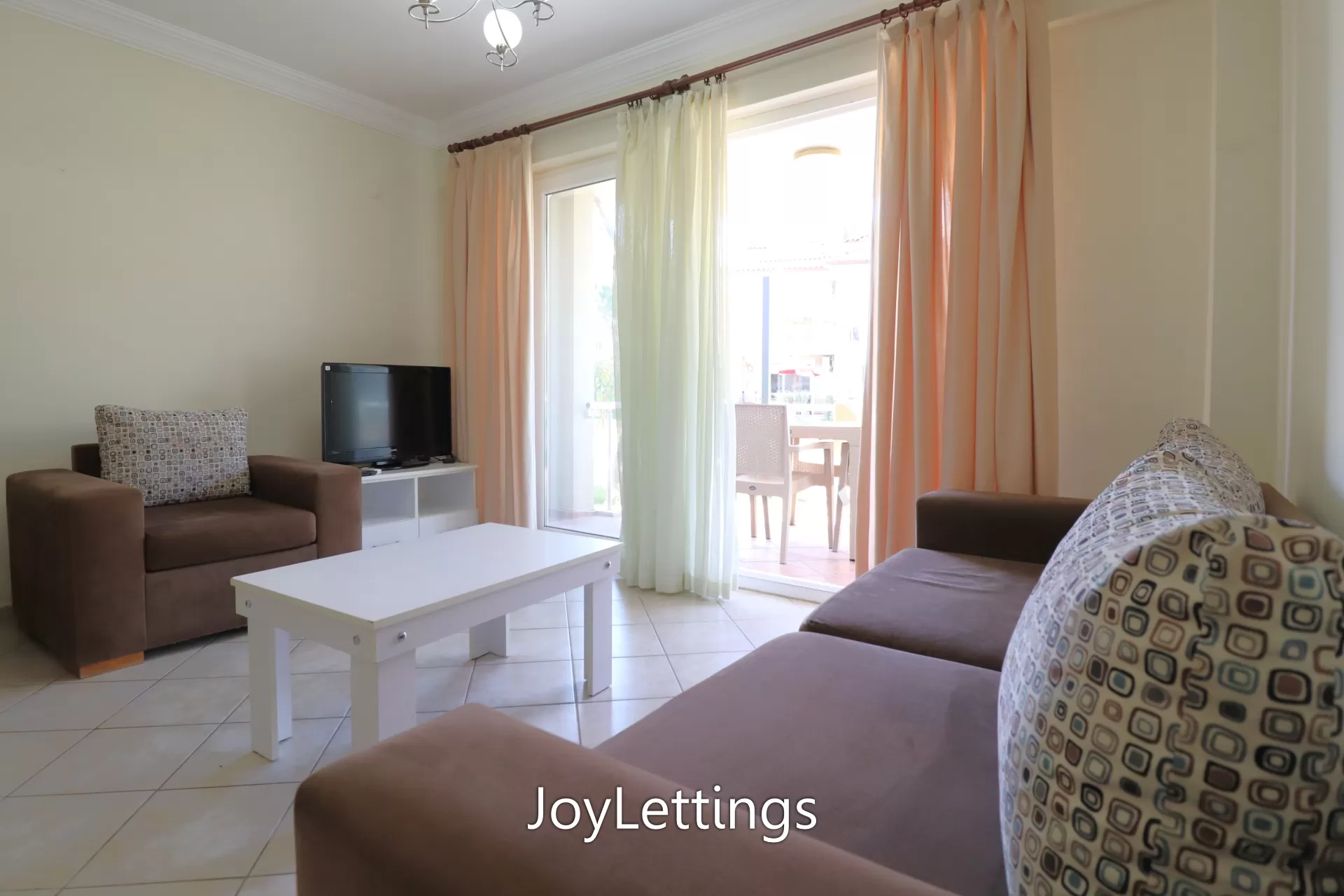This amazing beachfront complex Sunset Beach Club is in Fethiye, Calis Beach, with a nice private beach. The complex has got a restaurant, bar and supermarket inside. The beach promenade and all central amenities of the Calis town are just at 5-10 minutes walk. This ground floor one-bedroom apartment to rent in Sunset Beach Fethiye, has a good location in the complex, close to the pool. It has got a garden area in front.
