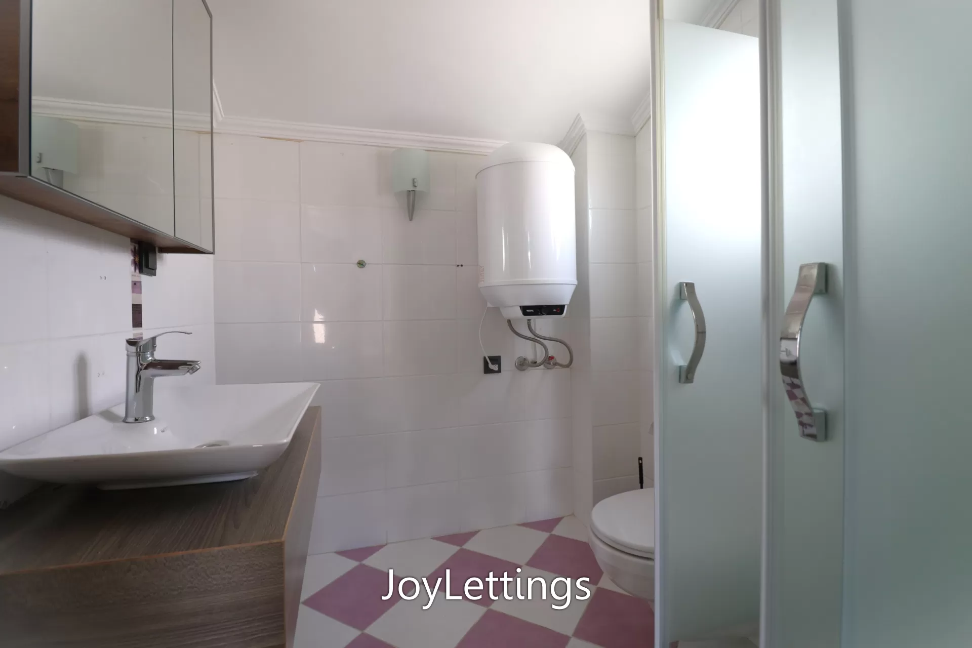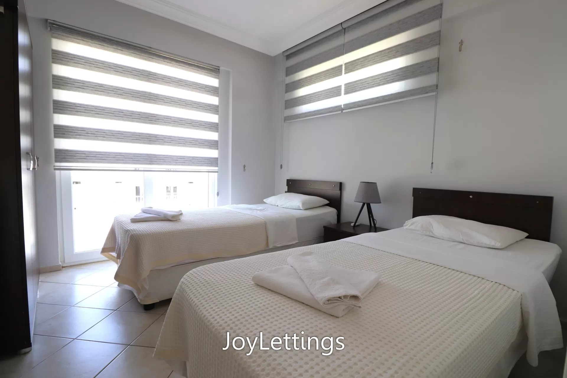 İki katlı bu kiralık yazlığın birinci katında salon, mutfak, 2 adet tek kişilik yataklı bir yatak odası bir banyo ve balkon bulunuyor. Çatı katında ise ebeveyn banyolu ve çift kişilik yataklı büyük bir yatak odası ve gayet keyifli bir çatı terası var.